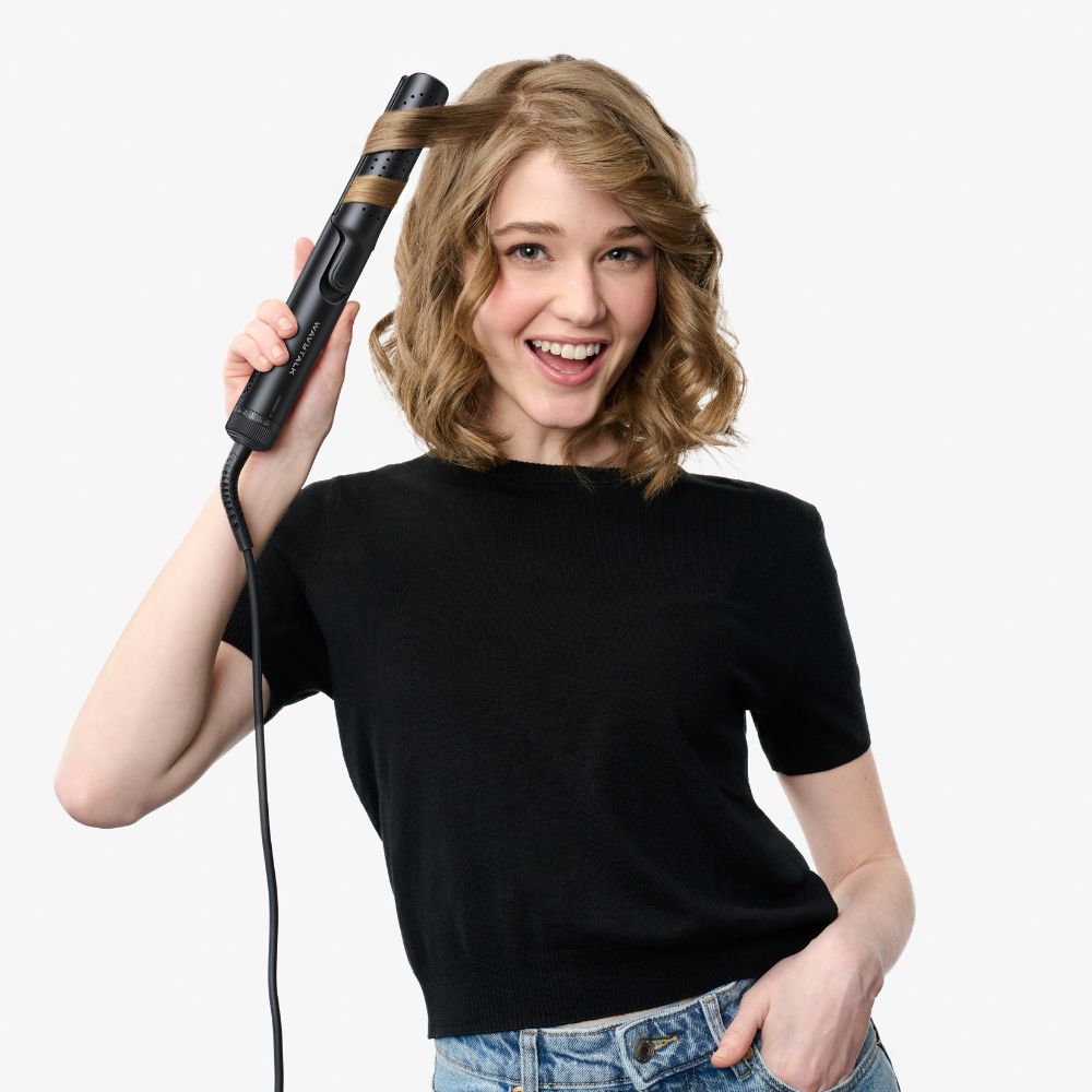 Go with the (air)flow. This innovative 3-in-1 tool features 140 air outlets that blow cool air, surrounding strands with 360° cold air-styling technology to minimize heat damage and maximize hold. Like a cool-shot on a hair dryer, it sets curls while you style. Switch from silky-straight to beachy waves or curls, without swapping tools. With a 30-second heat-up time and a rotating temp dial with 5 heat settings, it’s set to be your next hair holy grail.