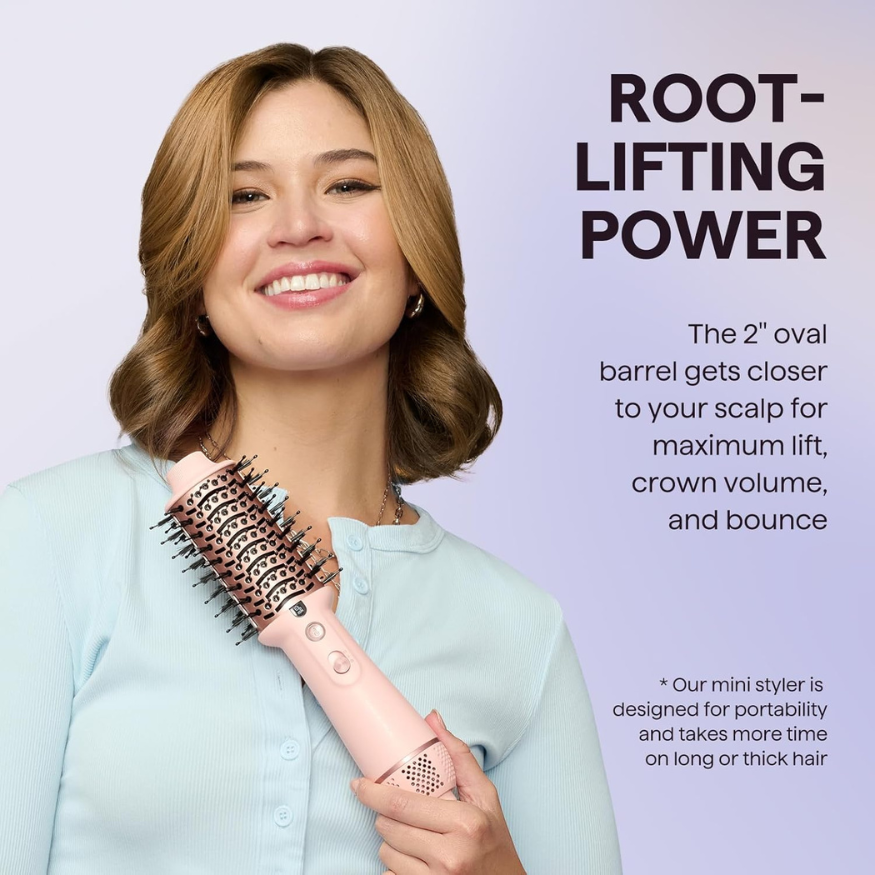 Blowouts on the fly just got easier. The Jet Brush is a compact, dual-voltage hot air brush designed for smooth, voluminous styling anywhere you go. Lightweight and travel-ready, it dries and styles in one step using ceramic-titanium heat and ionic technology to reduce frizz and boost shine. The 2" oval barrel grips close to the roots for controlled lift and bounce, making it your shortcut to sleek strands or bouncy blowouts, wherever you land.
