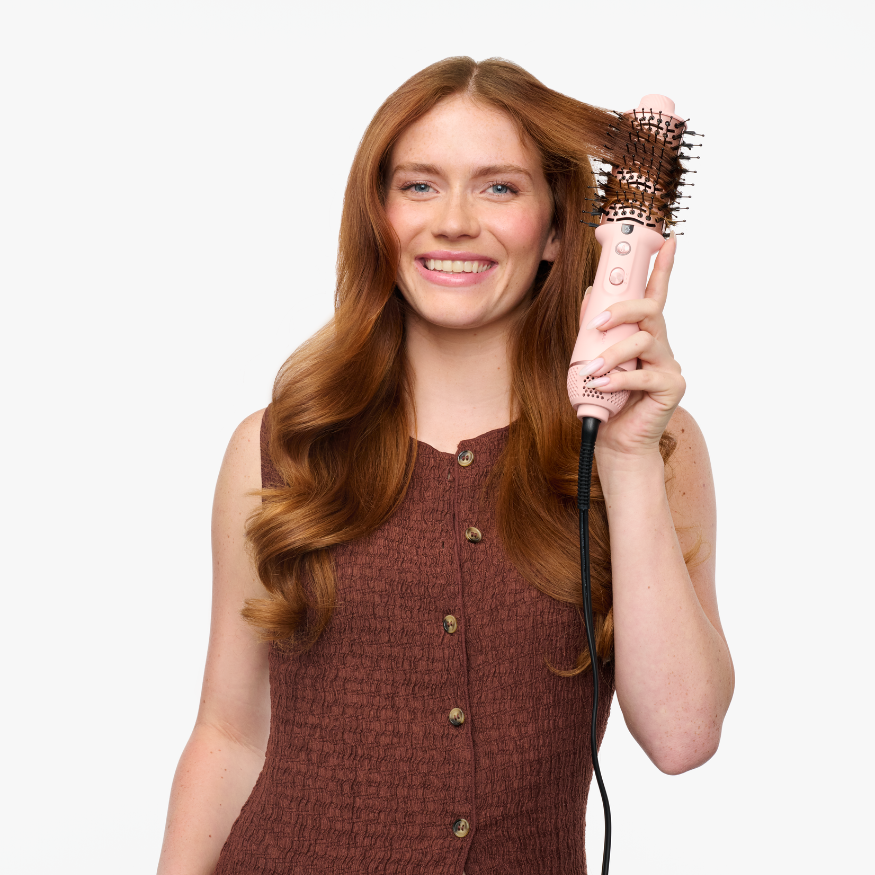Work through mid-lengths and ends to smooth strands and create a polished blowout. Finish with cool air to set your style.